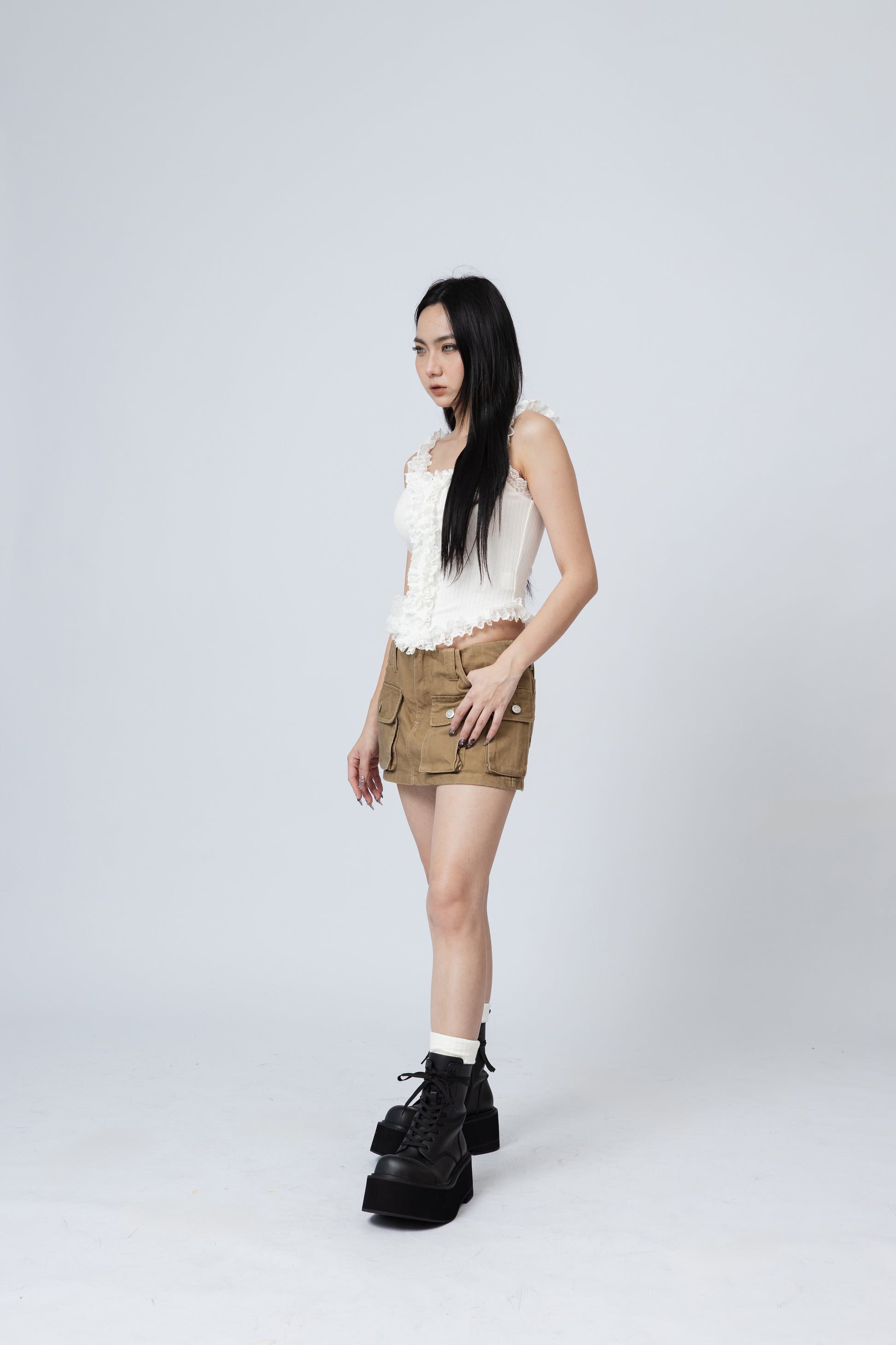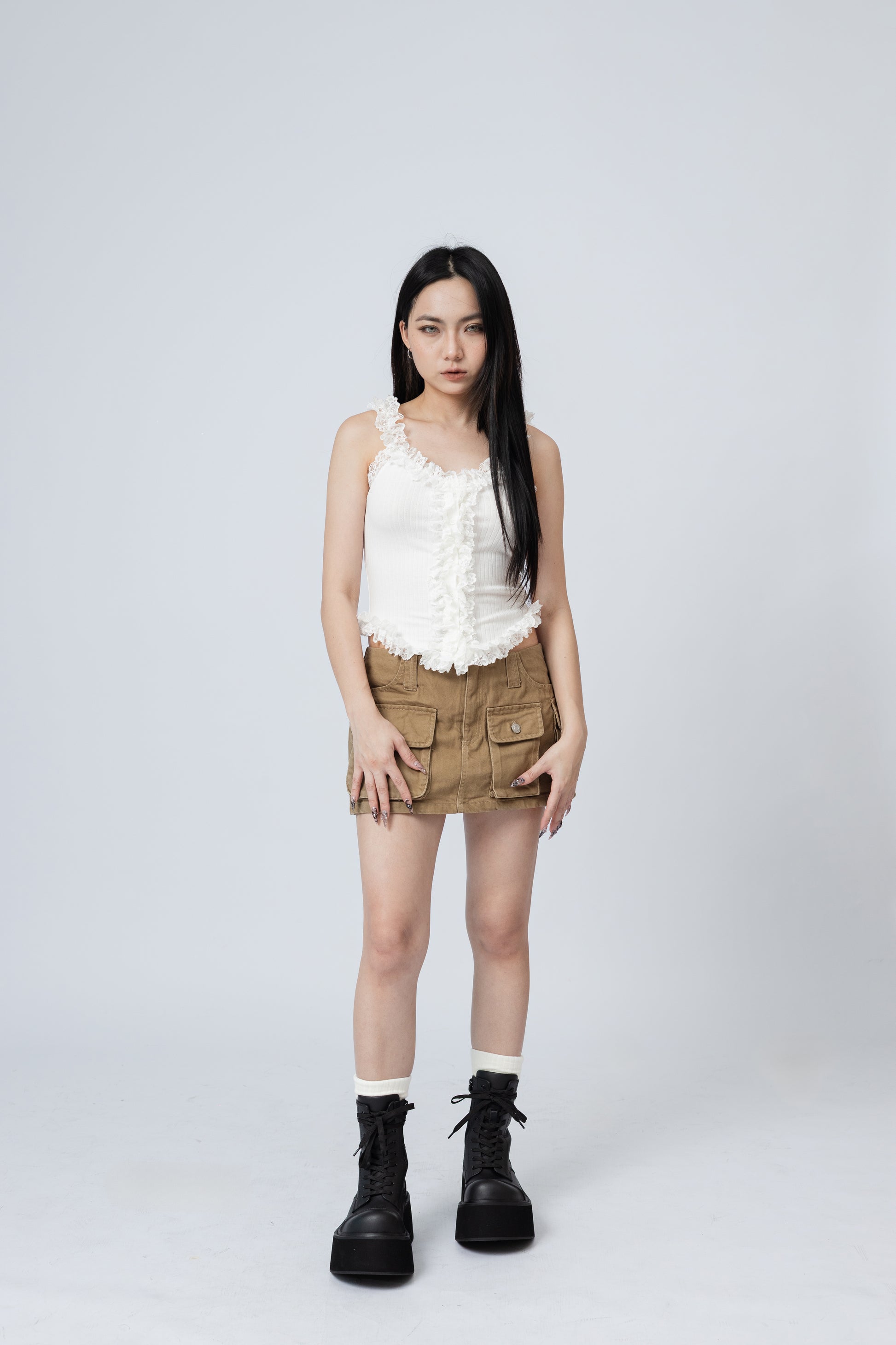 Ruffles Cami Top - WHITE .