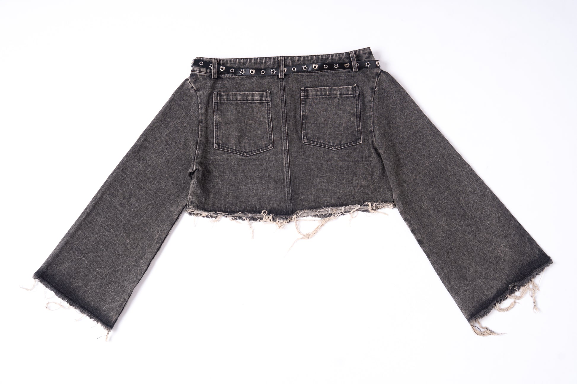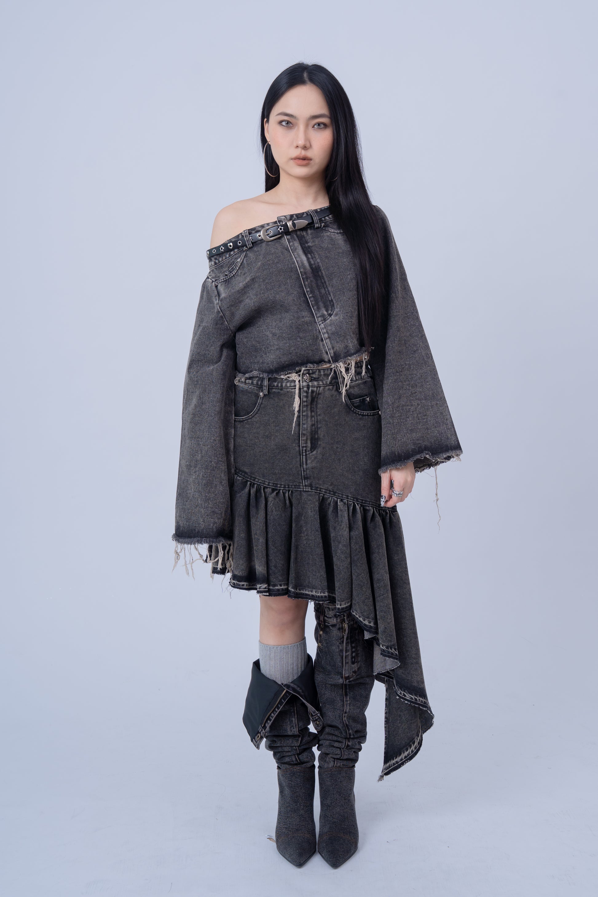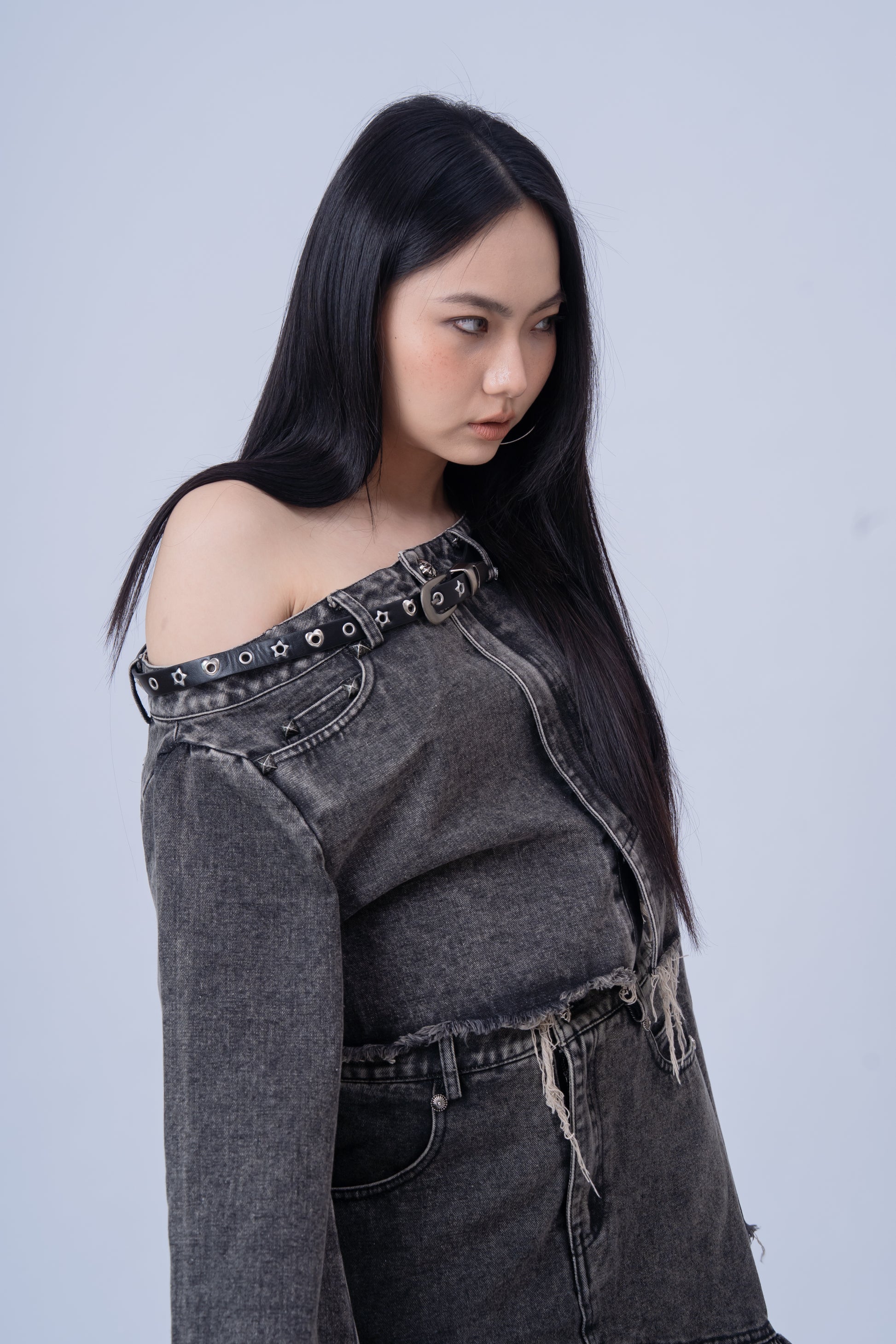 Denim Shirt with Slanted Collar .