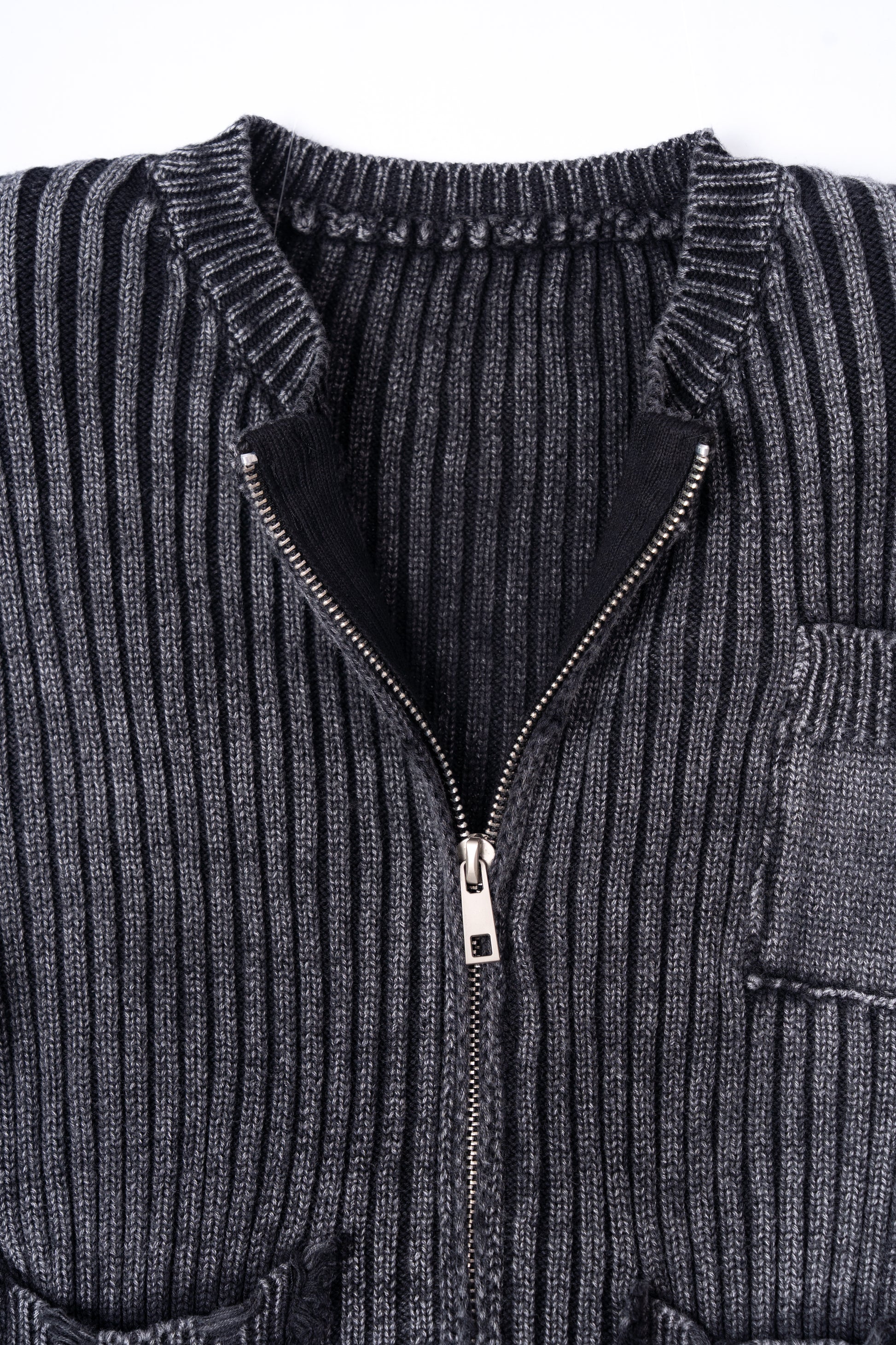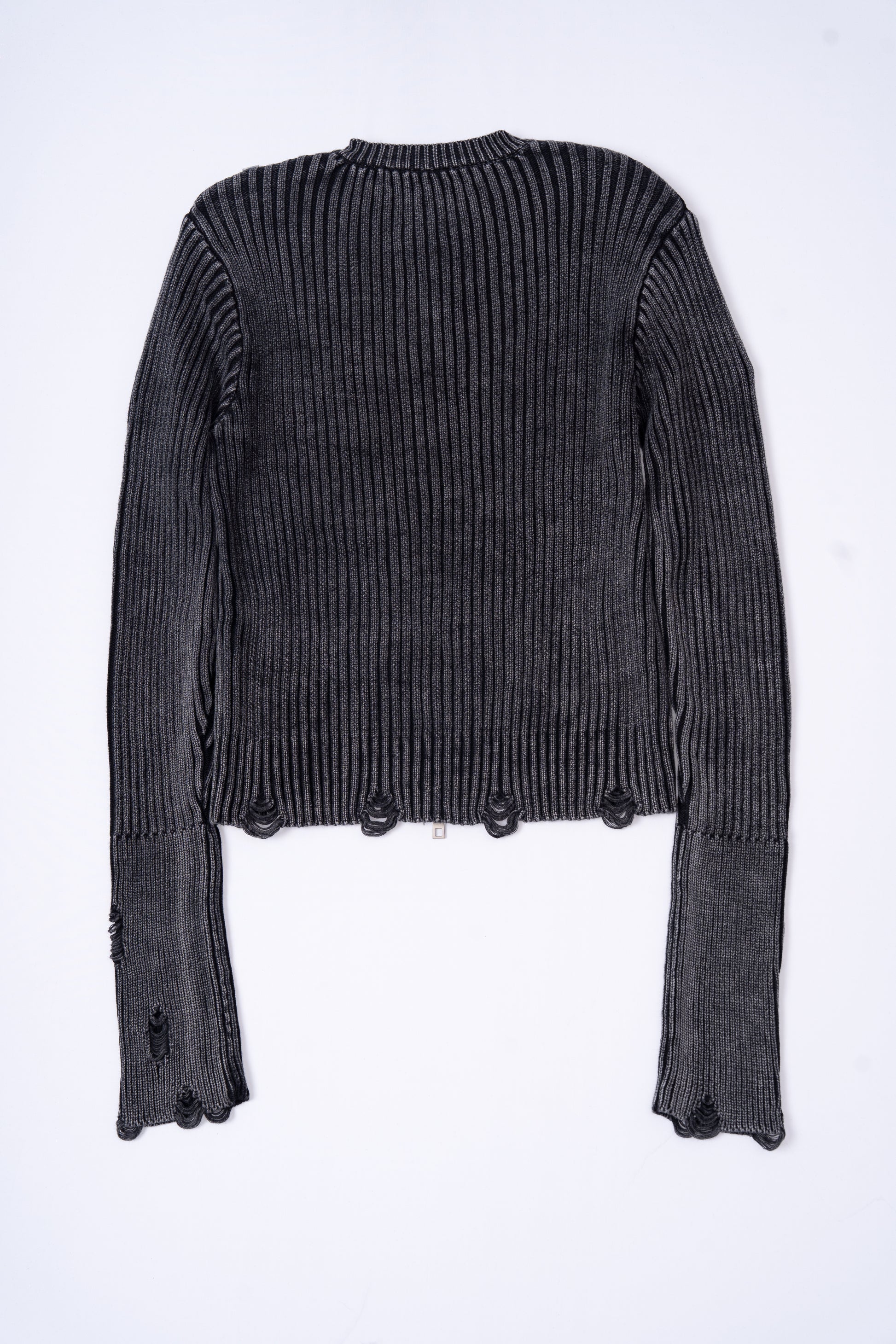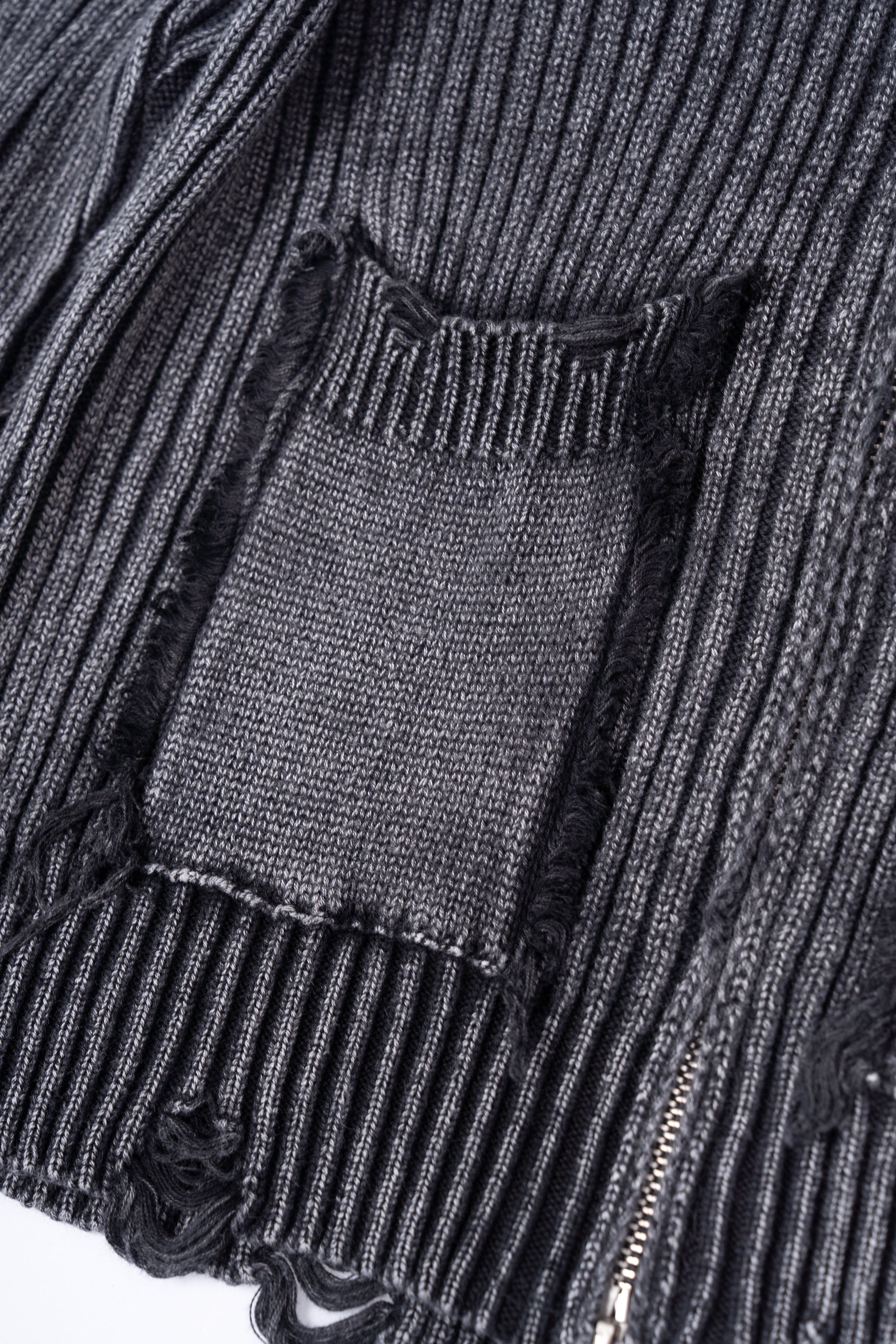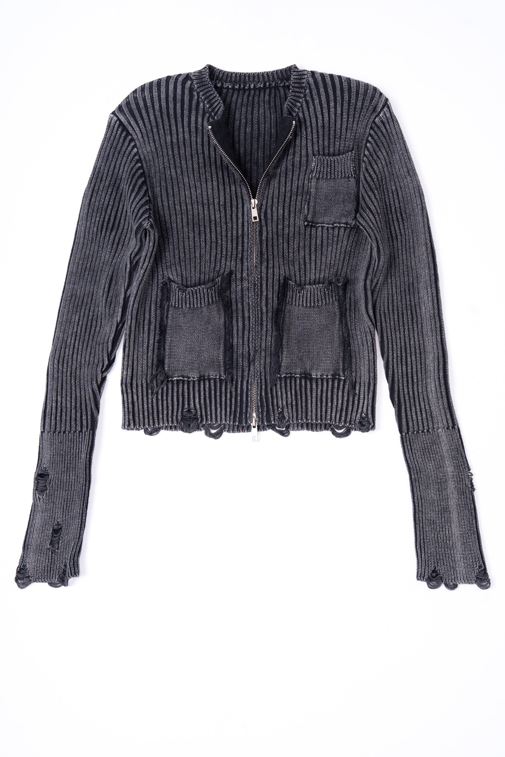Distressed Zip Up Knit Cardigan .